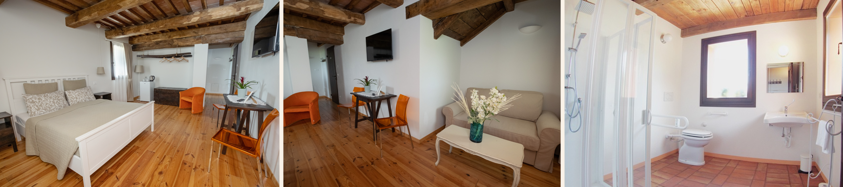 IL CASALE offers 5 double rooms, from which 3 are suitable for disabled persons. The rooms are spacy, comfortable and sunny, with flat screen TV. Every room has its own bathroom with shower, WC and bidet. The guests can use a private parking, Internet WIFI connection and a garden.